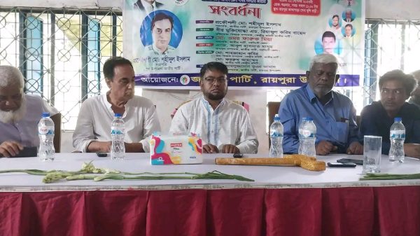 সফিকুল ইসলাম রিপন ঃ নরসিংদী নরসিংদী জেলা রায়পুরা উপজেলা জাতীয় পার্টির পরিচিতি সভা ও নরসিংদী জেলা জাতীয় পার্টির নবনির্বাচিত সভাপতি ও সাধারণ সম্পাদক এর সংবধনা অনুষ্টিত হয়েছে। আজ শুক্রবার জাতীয়