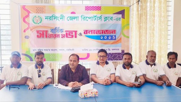 নরসিংদী প্রতিনিধিঃ নরসিংদী জেলা রিপোর্টার্স ক্লাব’র বার্ষিক সাধারণ সভা(এজিএম) ও বনভোজন-২০২৩ অনুষ্ঠিত হয়েছে। মঙ্গলবার (১৯ সেপ্টেম্বর) জেলার পলাশ উপজেলার টেঙ্গরপাড়াস্থ বাবু রঞ্জিত কুমার সাহার বাংলো বাড়িতে দিনব্যাপী এ এজিএম ও