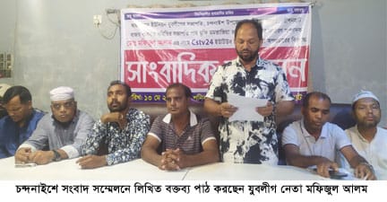 এসএম জাকির চন্দনাইশ উপজেলার কাঞ্চনাবাদ ইউনিয়ন যুবলীগের সভাপতি মফিজুল আলমের বিরুদ্ধে অপ-প্রচার ও ফেসবুক চ্যানেলে মিথ্যা সংবাদ পরিবেশন করায় সংবাদ সম্মেলন করেছেন কাঞ্চনাবাদ ইউনিয়ন যুবলীগ। গতকাল ১৩ মে বিকালে স্থানীয়