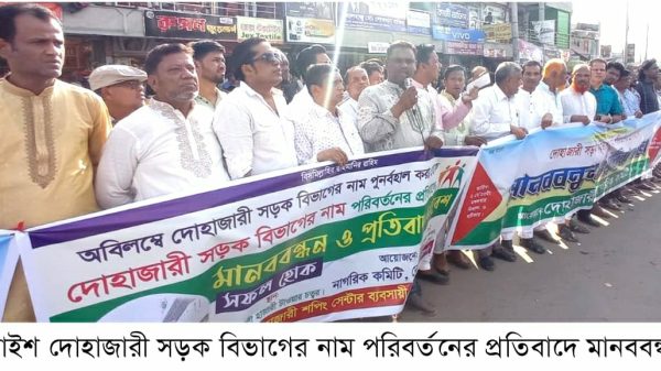 এসএম জাকির চন্দনাইশ দোহাজারী সড়ক বিভাগের নাম পরিবর্তনের প্রতিবাদে দোহাজারী নাগরিক কমিটির উদ্যোগে চট্টগ্রাম কক্সবাজার মহাসড়কে দোহাজারী সদর এলাকায় সর্বস্তরের মানুষের উপস্থিতিতে মানববন্ধন, বিক্ষোভ মিছিল ও সড়ক অবরোধ অনুষ্ঠিত হয়।